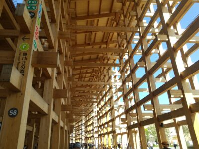 職業がら大屋根リング・パビリオンの建物のつくりに興味深々でした。