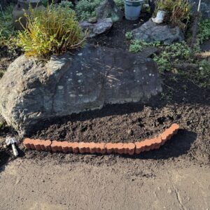 洋風の庭になるでしょうか? マルケンホーム 芝原です👩 既存の植物を引き抜き、土を耕した後、レンガを設置しました...